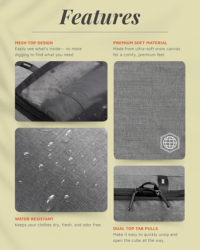 - MAXIMIZE PACKING SPACE: Fit more in your suitcase with TRIPPED compression packing cubes! These premium travel organizers compress bulky clothes flat — saving up to 30% more space while keeping outfits neat and wrinkle-free.