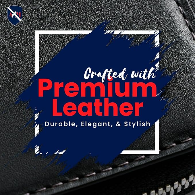 ALLEN & MATE Passport Holder Travel Wallet, 100% Leather RFID Blocking Travel Document Organiser for Men & Women