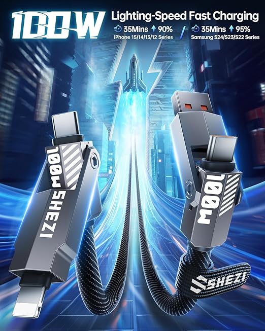 - Versatile 4-in-1 Design: SHEZI upgraded 4-in-1 multi charging cable adopts a rocket shape design of multiple ports, which meets your variety of charging needs in one cable.Charge and sync your devices without the hassle of switching between multiple cables. Simplify your charging setup with our versatile 4-in-1 usb-c cable.