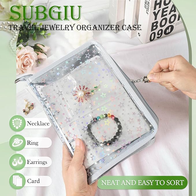 - EFFICIENT SPACE-SAVING DESIGN: Easily organize and view all your pieces with this transparent, easy-access jewelry book, perfect for keeping earrings, rings, necklaces, and more in their place. It’s the ultimate earring storage solution