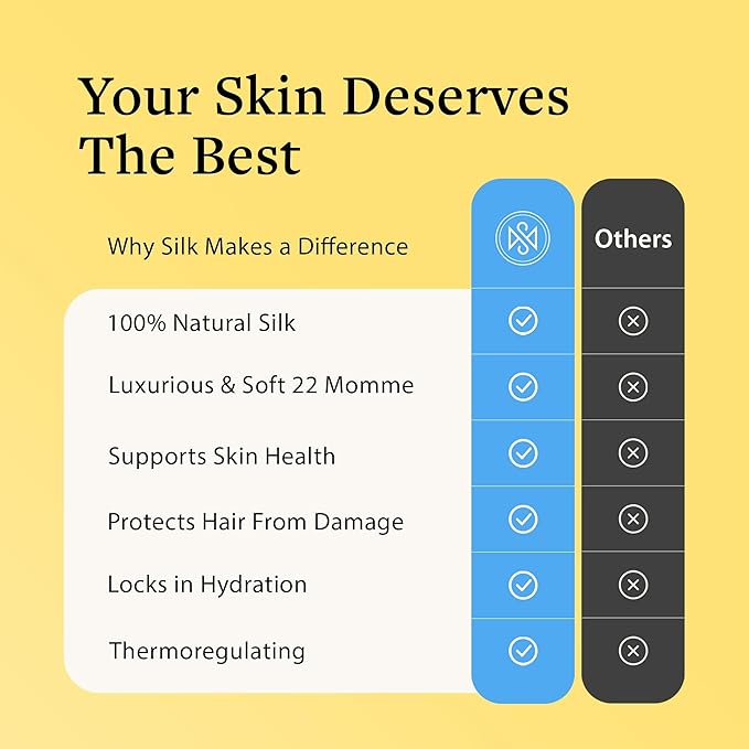 - Cooling & Temperature Regulating: Whether it’s summer or winter, silk’s natural thermoregulating properties help keep you cool on warm nights and cozy when it’s cold.