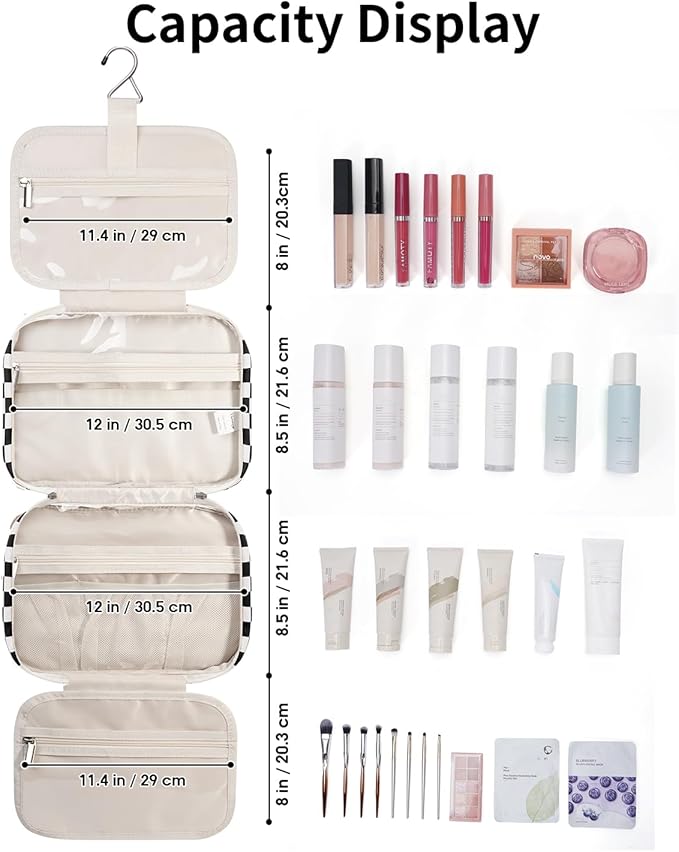 - LARGE VERSION - Fold size 12"x9"x5.5”/30.5x22x13 cm. We launch larger version to meet large-capacity, which you may choose large or medium size based on your needs. It could easily fit full-size travel essentials like shampoo & conditioner, lotion, face wash, toothpaste, toothbrushes, hair brush and daily makeups