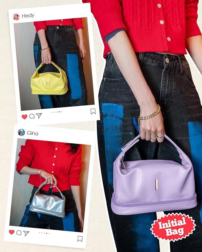 - 【Double-layer Design】The monogrammed makeup bags is double-layer with a unique design of upper and lower storage areas. The bottom compartment is great for storing cosmetics, eye shadows, makeup brushes, and other items. The top layer features a large opening for easy access, along with two small compartments for lipsticks and earrings.