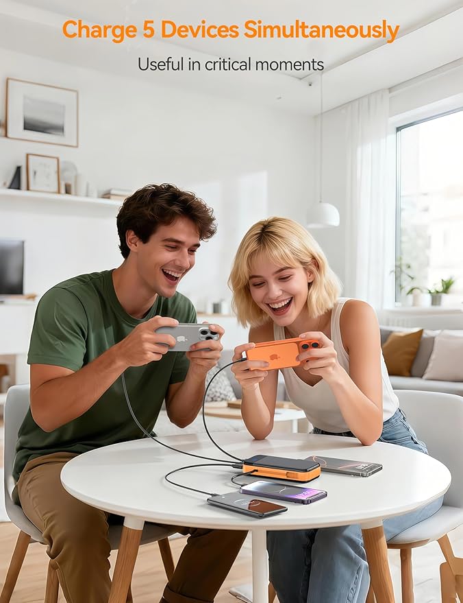 Portable Charger Power Bank Built-in Cables, 32000mAh 22.5W USB C Fast Charging, 5 Outputs 3 Inputs Travel Essentials Battery Pack Compatible with iPhone, iPad, Samsung, Google Pixel, Orange