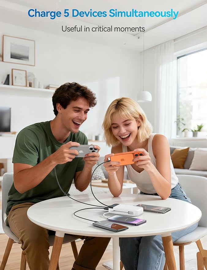 - Universal compatible with All popular devices: As portable phone charger built-in all ports, multi cables, it is widely compatible with all popular cellphones or tablets. Widely compatible with iPhone 14 13 12 11 8 7 Series, XR, XS Max, compatible with Samsung S22 S21 S20 A52 A32 Z fold series Z flip series and compatible with Google Pixel series and other android phones tablets, etc...