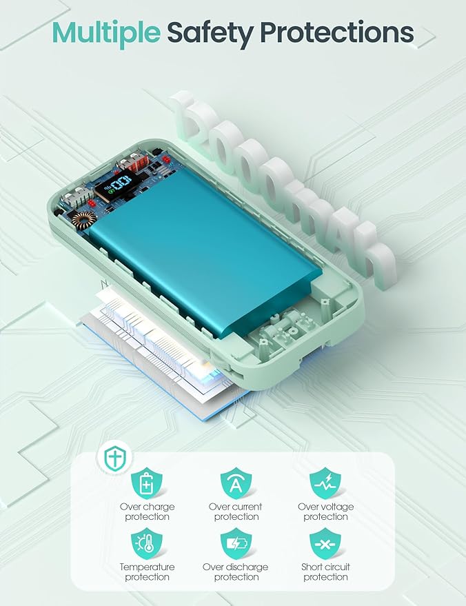 - [Super Fast Charging Power Bank]Designed for multiple devices, this fast charging power bank with USB C port, USB C cable and one of USB A.This USB A is specially designed for fast charging Android and other smart devices.The elegant LED digital screen displays the battery power even accurately to 1%.