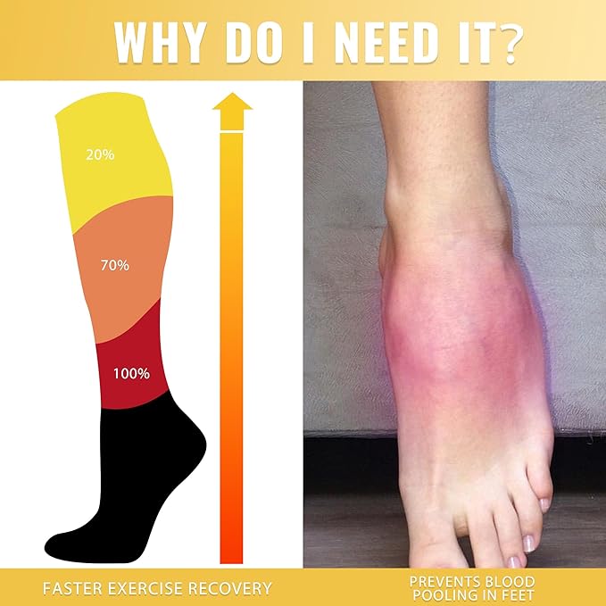 • SOCKS FOR WOMEN: 20-30mmHg circulation compression socks are with moderate compression and are recommended by doctors and trainers. Nurse compression socks create the highest support pressure at the ankle and gradually decrease along the legs, making your legs more comfortable.