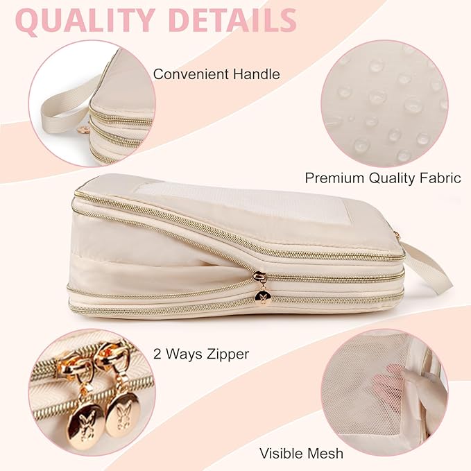 - 【SAVE UP TO 60% SPACE】Expandable Double-Sided Compression Packing Cube design allows you to fit double the items in your luggage. Just zip the extra zipper to compress clothes, saving space and keeping your suitcase organized.