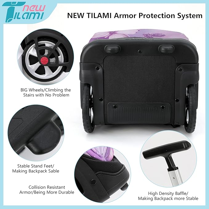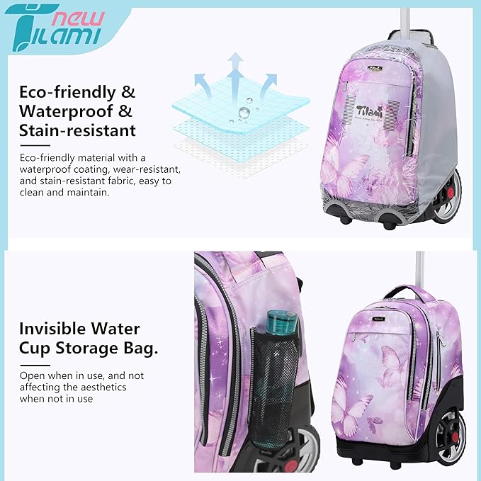- Durable and Reliable: The New Tilami rolling backpack for children is constructed from waterproof and tear-resistant materials, ensuring longevity and suitability for both academic and travel purposes.