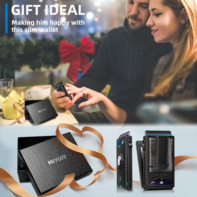 Airtag Wallet for Men,with Money Clip Gift Boxed,Slim Front Pocket Wallet RFID Blocking Metal Case Smart Pop-up Credit Card Holder in Magnetic Leather Flip