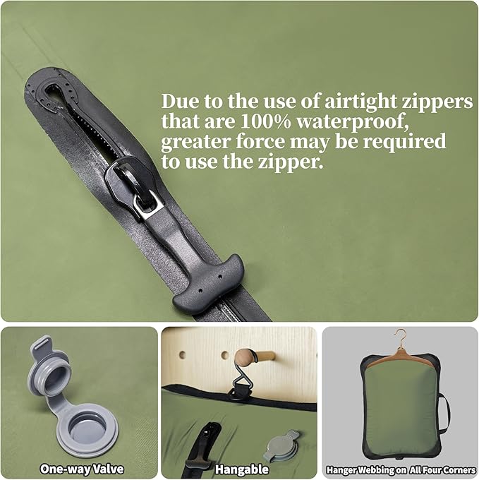 - 【Airtight Zipper】Our vacuum bags for travel are fitted with high - quality IP67 airtight zippers. They are similar to the zippers found on diving suits. The function of this airtight zipper is to prevent gas and liquids from seeping in. It keeps your clothing dry and clean, protecting them from any potential moisture or dirt during travel. When using the zipper, it is important to pull it all the way through to ensure an optimal seal, thus maximizing the effectiveness of the airtight feature.