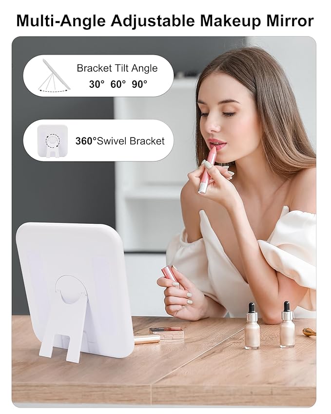 - 【ADVANCED 3 COLOR FILL LIGHT MIRROR】Detachable Velcro Makeup Mirror with 3 lighting modes for switching with cool, natural & warm light. Long press to control the brightness from 0% to 100%