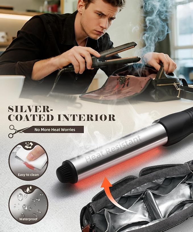 - Heat-Resistant & Easy-Clean Lining: The main compartment is lined with aluminum heat-insulation material that safely contains hot tools like straighteners and dryers while providing waterproof protection. Spills and stains wipe away effortlessly, making this clipper bag ideal for busy stylists who need quick cleanup after appointments.