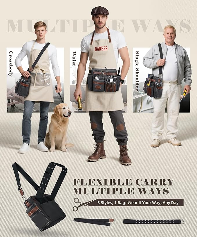 - Versatile Carrying Options: Adapt to most situation with three convenient carrying methods: use the detachable and adjustable shoulder strap for cross-body or single shoulder comfort, convert it to a handy waist bag with the removable belt. This hairstylist bag moves with you seamlessly whether you're commuting to the salon or making home pet grooming.