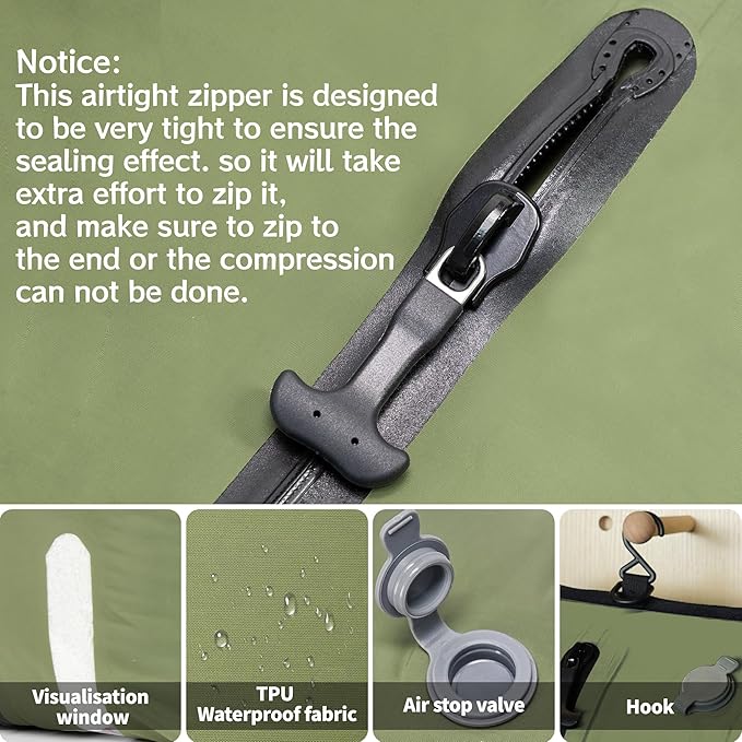 - Upgraded Vacuum Compression Bags: Compared to regular compression packing cubes, these upgraded vacuum compression bags boast superior vacuum compression capabilities. Utilizing advanced 40DTPU nylon environmentally friendly waterproof fabric, they offer exceptional durability and abrasion resistance