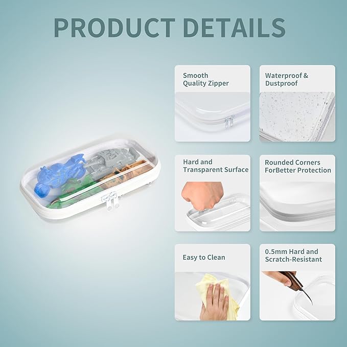 - Premium Construction: These clear hard zipper cases are made of PET material, which is not only sturdy and durable, but also easy to clean. Reinforced zippers and seams provide extra durability, making it a reliable choice for daily use and long-term storage.
