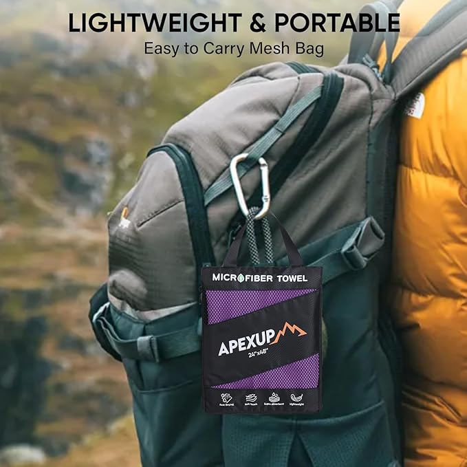 APEXUP Microfiber Travel Towel, Ultra Absorbent Quick Dry Towels, Lightweight Gym Sports Camping Towel for Workout, Yoga, Beach, Shower, Swimming (60"×30", Purple)