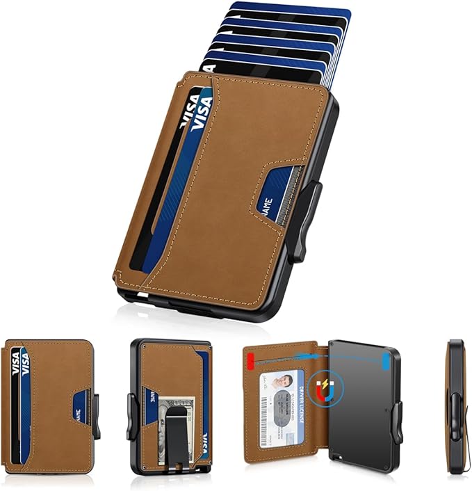 - 【RFID Blocking】The RFID wallet for men embeds a chip in the aluminum card box to block unknown scanning devices from scanning your credit cards, debit cards, and driver's licenses, maximizing the protection of your personal property.