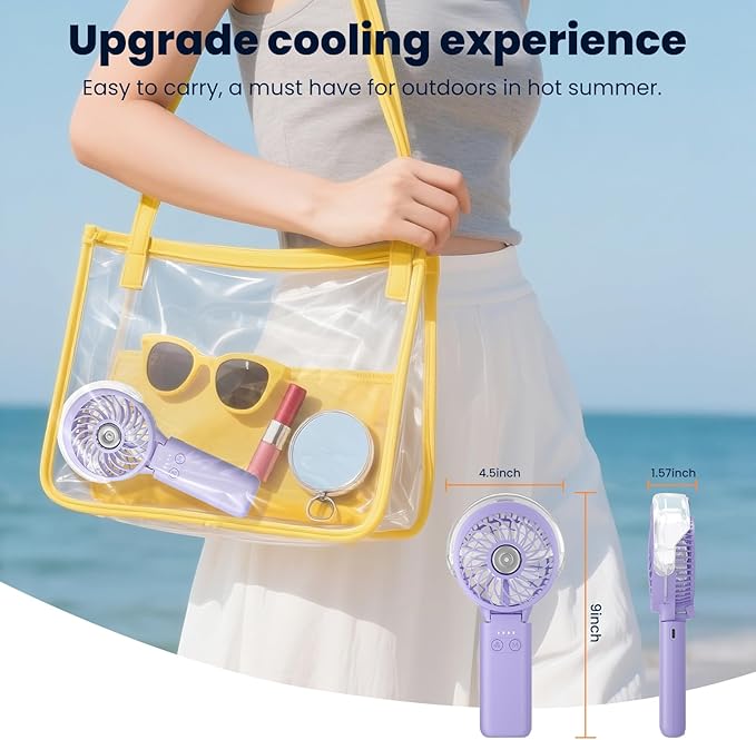 HandFan 5200mAh Upgraded Portable Misting Fan, Rechargeable Handheld Mister Fan, Spray Water Mist Fans, Mini Cooling AC Ice Fans for Beach Travel Concerts, Gifts for Women(Light Purple)