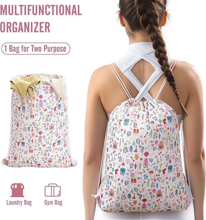 - Multi-purpose Travel Essential: Includes a hanging toiletry bag with 5 compartments for organizing toiletries and cosmetics, featuring a convenient hanging design. The versatile laundry bag holds up to 9 garments and transforms into a backpack, perfect for all your travels.