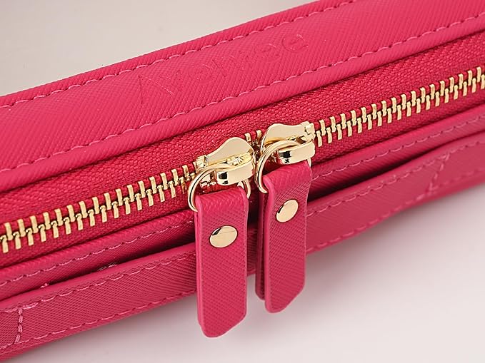 - ❤【PREMIUM PU LEATHER】Unlike other flimsy and collapsible pvc bags, our cosmetic pouch which made of premium saffiano PU leather and thick vinyl can keep a good structure. Together with the beautiful stitches and whisper-quiet metal zippers, this make up bag is durable for long-lasting use.