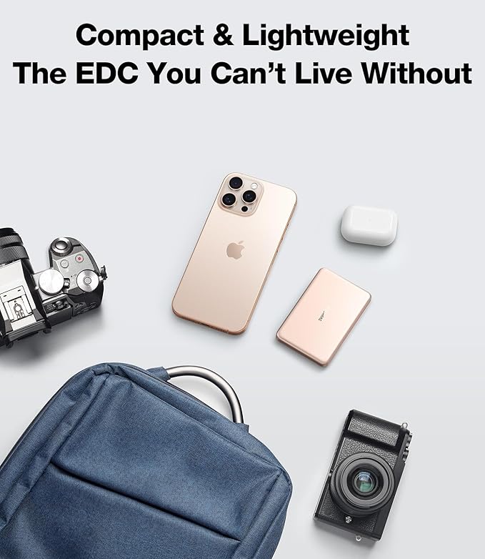 TORRAS MiniMag Power Bank,Ultra-Slim 10,000mAh Magnetic Wireless Portable Charger, 22.5W Fast Charging iPhone Air Magnetic Battery Pack Designed for iPhone 17 Pro Max/17 Pro/Air/16/15/14/13/12, Gold