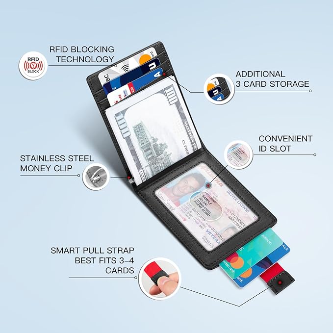 Zitahli Wallet for Men-6 Slots ID Window-Mens Wallets-Slim Wallet Classic Spring Money Clip RFID Blocking-Gift for Men