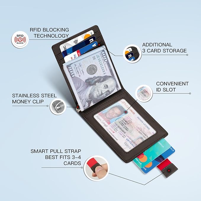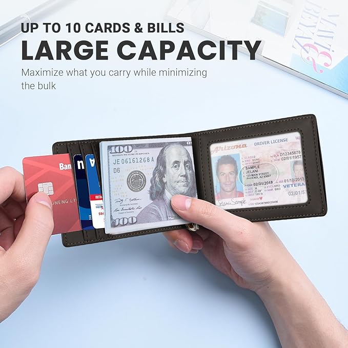 Zitahli Wallet for Men-6 Slots ID Window-Mens Wallets-Slim Wallet Classic Spring Money Clip RFID Blocking-Gift for Men