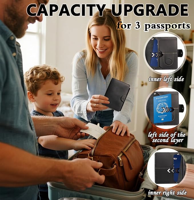 - 【BUILT-IN AIRTAG SLOT】 A dedicated Hidden AirTag slot lets you track your leather passport wallet, designed as a multiple passport holder for travel, via Find My network. Perfect for airports, hotels, or crowded destinations—never lose your essentials again.