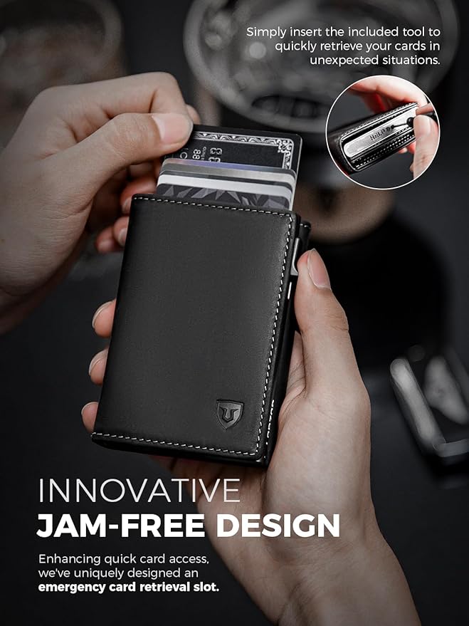 - 【Patent Pending Design】: Say goodbye to the low-quality cardholders on the market with our unique patented design that fully upgrades your cardholder! We've thoroughly improved the magnetic connection, button durability, tactile feel, anti-drop function, and weight. Plus, we've added a bottom card hole to prevent cards from getting stuck!