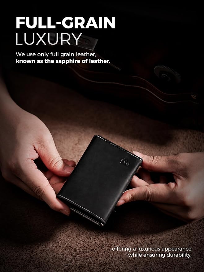 - 【100% Handcrafted Full-Grain Luxury】: We believe that an exquisite minimalist wallet can only be crafted by using the finest materials and masterful craftsmanship. Therefore, our slim wallet is handcrafted from the finest full-grain leather – known as "the sapphire of genuine leather", made from the top layer of the cowhide, typically used only for luxury items. Over time and with different usage habits, the surface will develop a unique patina—a hallmark of high-quality leather, enjoy the gift from nature!
