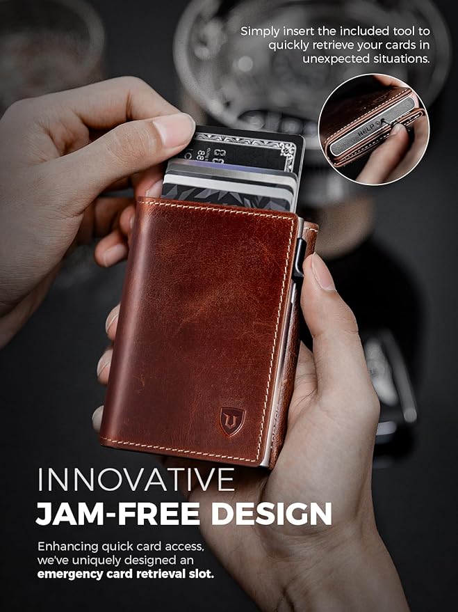 - 【Patent Pending Design】: Say goodbye to the low-quality cardholders on the market with our unique patented design that fully upgrades your cardholder! We've thoroughly improved the magnetic connection, button durability, tactile feel, anti-drop function, and weight. Plus, we've added a bottom card hole to prevent cards from getting stuck!