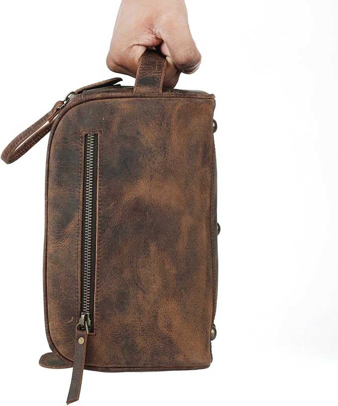 - PREMIUM QUALITY YKK ZIPPERS & WATER-RESISTANT TOILETRY BAG: Made from top-grain buffalo leather, it features strong YKK zippers and a tear-resistant lining for long-lasting use. The interior is lined with water-resistant material to protect your belongings from spills and leaks, ensuring your essentials stay safe and dry.
