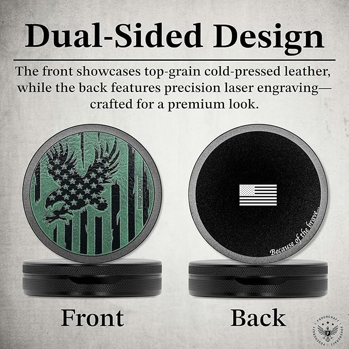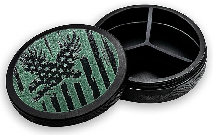 Leather-Faced Metal Pouch Can | Metal Container | Slim EDC Pocket Tin | Airtight & Moisture-Resistant | Daily Organizer | Pill Case & Travel Tin | Fatherโs Day Gift for Dad | (American Flag, Black)