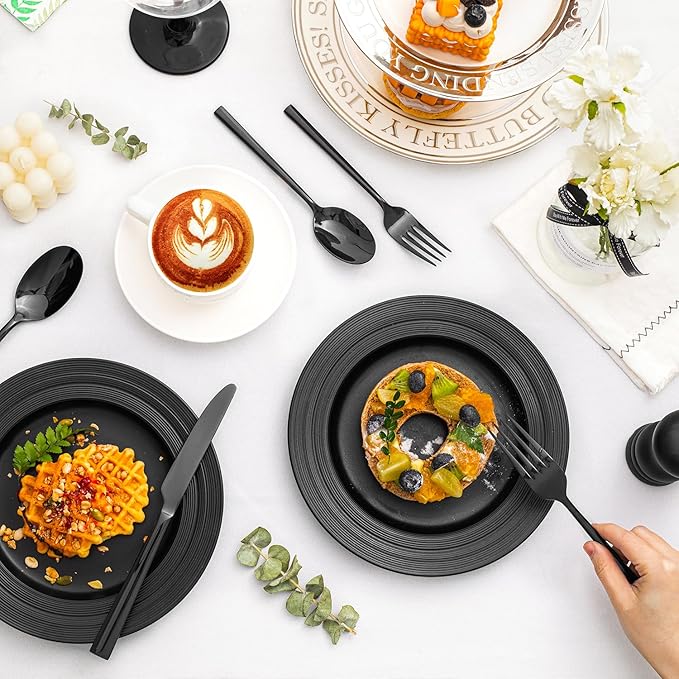KINGSTONE Black Silverware Set, 20-Piece Forged Flatware Set Cutlery Set Premium Stainless Steel, Service for 4, for Kitchen, Home, Wedding, Party, Mirror Polished and Dishwasher Safe