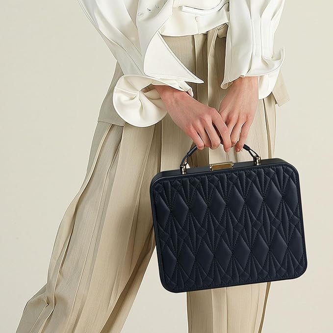 - PRETTY APPEARANCE - To make our jewelry organizer more design-friendly, we spent a long time using needlework to outline beautiful patterns on the surface of the jewelry box. We have installed handles on the travel jewelry box to make travel easier.