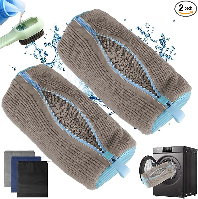 - 360° Wrap-Around Cleaning with Shoe Washing Machine Bag: Our innovative shoe washing machine bag is designed with plush fibers that provide a complete 360° wrap-around cleaning. Unlike regular mesh shoe wash bags, the soft chenille fibers effectively remove dirt and stains, ensuring your shoes are deeply cleaned without leaving lint or dye marks. This shoe cleaning bag ensures a safe, thorough clean for your shoes in the washing machine, ideal for sneakers, boots, and more.