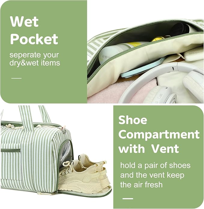 - Adjustable and detachable shoulder straps, metal hooks and plastic shoulder straps ensure a fit and non-slip. Padded and wrapped in the handle for more comfort. Very suitable for dance ,gym, swimming, sports, travel, weekend, overnight, yoga, camping, hiking and many outdoor activities and as gifts for women.