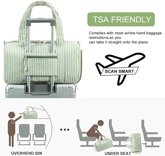 - The spacious main compartment of the cute girl weekend bag can accommodate sports jackets, pants, shirts, hats and thermos cups. The zippered sacks in the main compartment can hold important small items such as cards