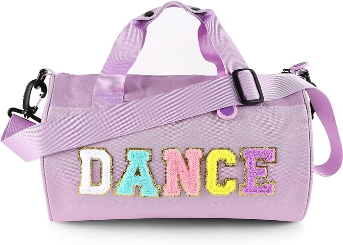 Dance Ballet Bag for Girls Sport Gym Duffle Bags Overnight Travel Bags Fun Dance Workout Duffel Bag Toddler Cute Bag for Dancers, Girls, Teens, Student Athletes (Purple)