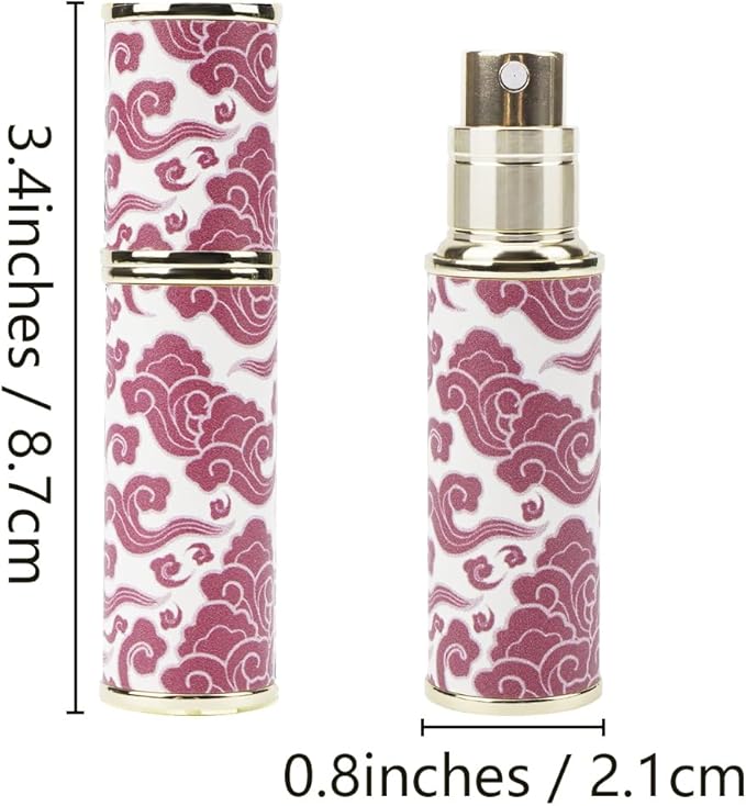 - The size of the pocket perfume dispenser is "diameter ¾" and 3" height. With a small size of 0.17 ounces (5 ml), it can be easily put into a wallet or beauty bag, making it very suitable for travel.