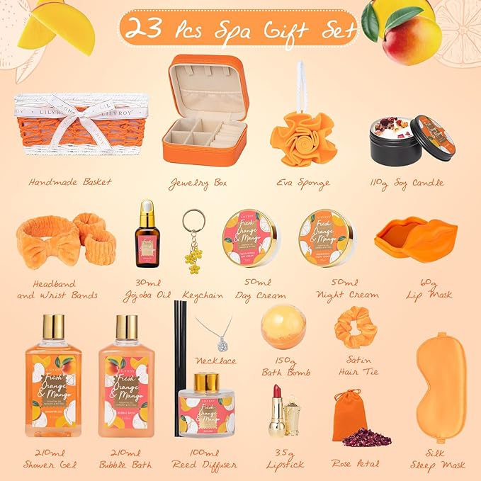 - PERFECT HOLIDAY GIFT SET FOR WOMEN: Leave the ordinary behind when you lavish yourself on the soft, feminine fragrance of fresh ORANGE & MANGO, and make you feel tropical like a holiday. The scent smells fresh