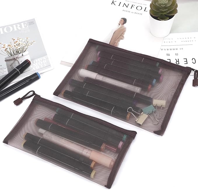 12 Pieces Zipper Nylon Mesh Pouch, Mesh Cosmetic Bags Makeup Bags Pencil Case, Multipurpose Travel Bags for Cosmetic School Office Supplies and Travel Accessories (Coffee, A5+B6)