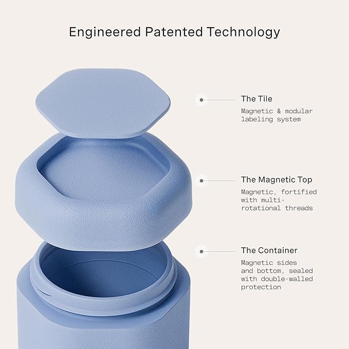- PATENTED MAGNETIC DESIGN - Designed for seamless storage, our travel capsules feature a magnetic design that connects each container vertically or horizontally. They include magnetic labels that seamlessly swap between The Flex Small, The Flex Medium, and The Flex Large Capsules.