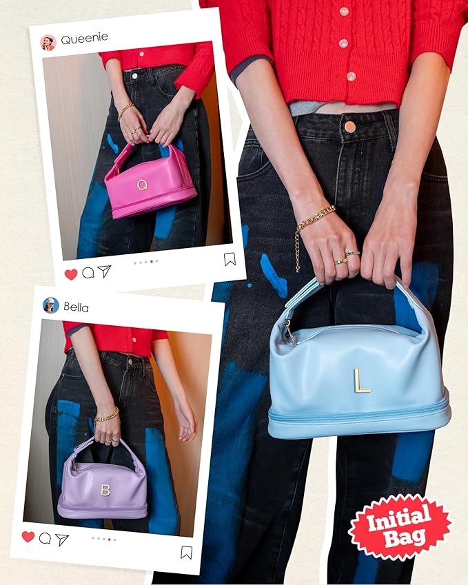- 【Double-layer Design】The monogrammed makeup bags is double-layer with a unique design of upper and lower storage areas. The bottom compartment is great for storing cosmetics, eye shadows, makeup brushes, and other items. The top layer features a large opening for easy access, along with two small compartments for lipsticks and earrings.