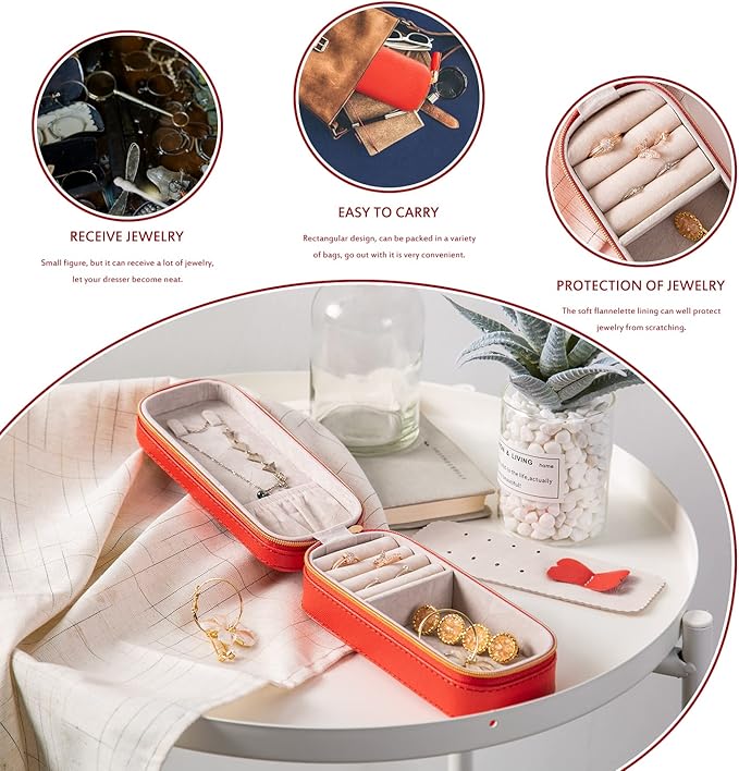 BONNY DODO Small Travel Jewelry Organizers Box for women with PU Leather Portable Mini Jewelry Case with compartments for Necklace Rings Earrings,Luxury Giftable boxes. (Red, S)