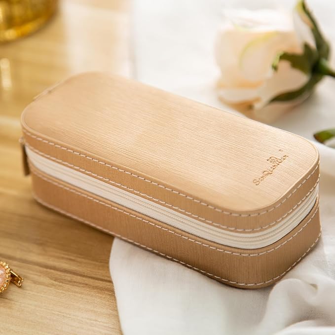 BONNY DODO Small Travel Jewelry Organizers Box for women with PU Leather Portable Mini Jewelry Case with compartments for Necklace Rings Earrings,Luxury Giftable boxes. (Champagne, S)