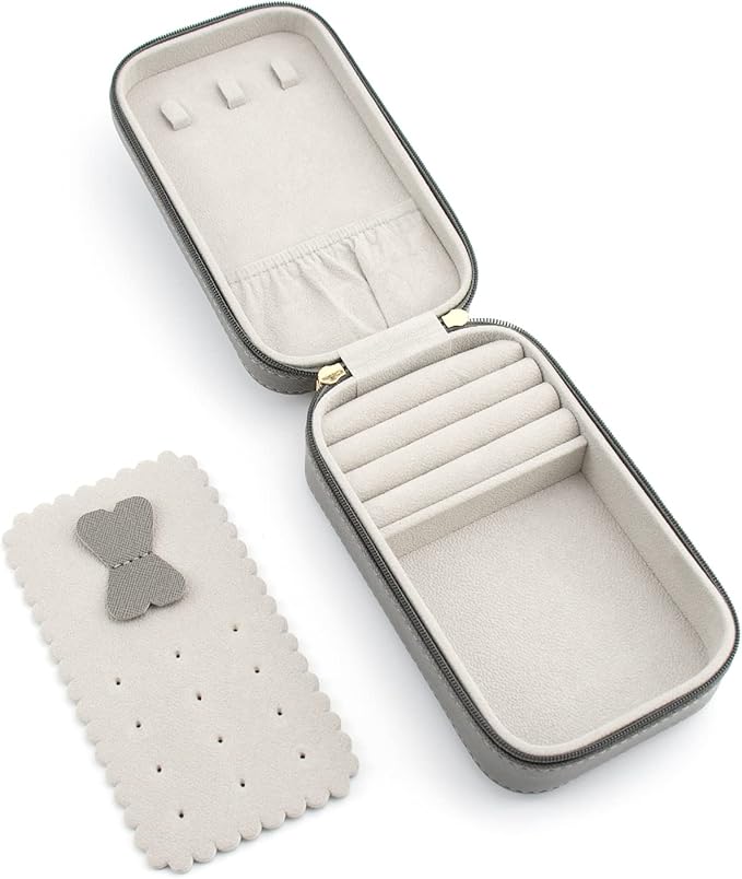 BONNY DODO Small Travel Jewelry Organizers Box for women with PU Leather Portable Mini Jewelry Case with compartments for Necklace Rings Earrings,Luxury Giftable boxes. (Gray, M)