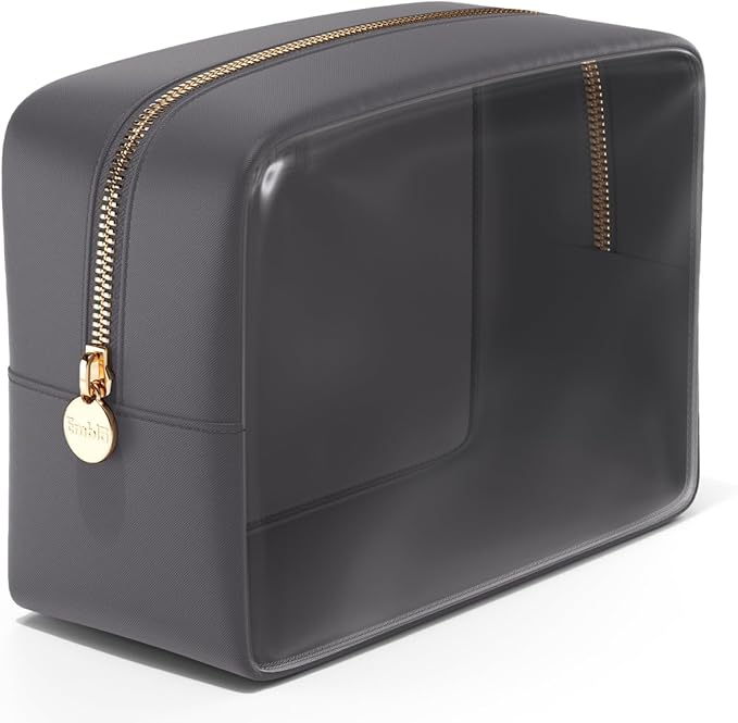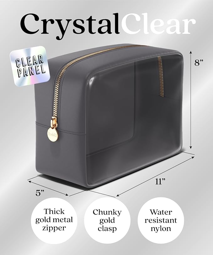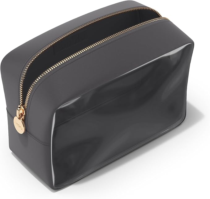 Embla London Makeup Bag Cosmetic Case, Clear Zipper Make Up Pouch and Toiletry Travel Tote, Cute Skincare Pouches for Women Girls, Preppy Purse Cosmetic Organizer, Large Makeup Bags, Grey