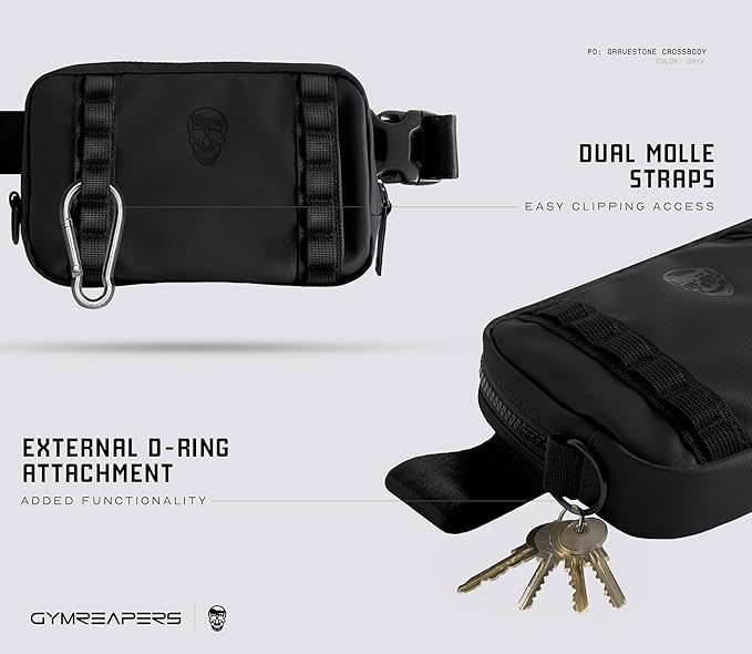 - GYMREAPERS GRAVESTONE CROSSBODY BAG - Experience effortless functionality with this versatile crossbody bag, designed to carry your daily essentials for everyday use, travel, and outdoor adventures. Crafted from 900D TPU coated polyester, our sling bag offers exceptional weather resistance and long-lasting performance. The minimalist design features smart organization with a secure internal pocket for your smartphone and keys. The adjustable strap provides multiple carry options – wear it over the shoulder, across the body, or around the waist.